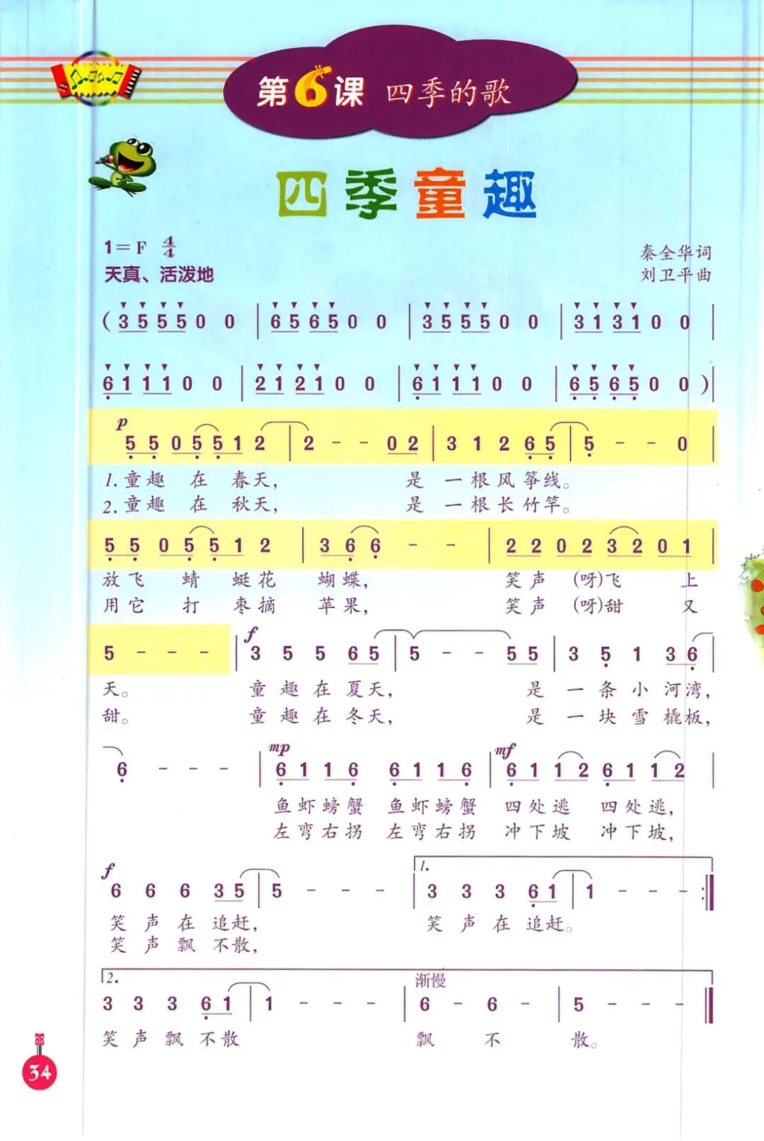 这是一首曲调欢快活泼、充满童趣的歌曲。4/4拍,五声徵调式。歌中出现了一幅幅生动而饶有情趣的画面,形象地表现了儿童们在一年四季中天真烂漫的欢乐情景,抒发了他们热爱生活的心情。