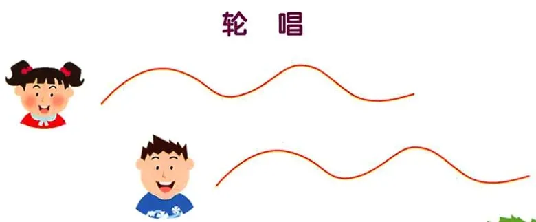 轮唱:轮唱是由两个、三个或四个声部演唱同一个旋律,但不是同时开始,而是先后相距一拍、几拍或一小节出现,形成此起彼落,连续不断的模仿效果的一种音乐形式。