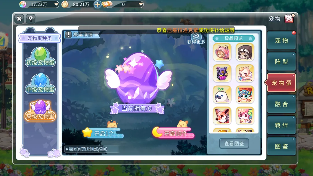 参与宠物挑战即可获取宠物蛋,分为三个等级,涵盖不同品质萌宠: