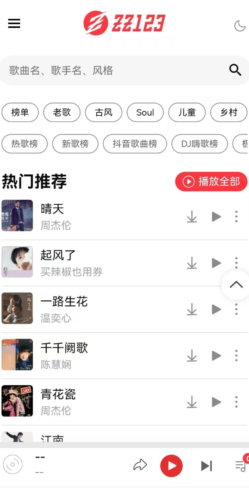 它完全免费,界面简约,歌曲更新迅速,分类明确,涵盖按心情或场景推荐等多种分类方式。主要功能包括在线收听和下载,无广告干扰,特别适合在工作疲惫时快速缓解压力,比刷短视频更省时高效。