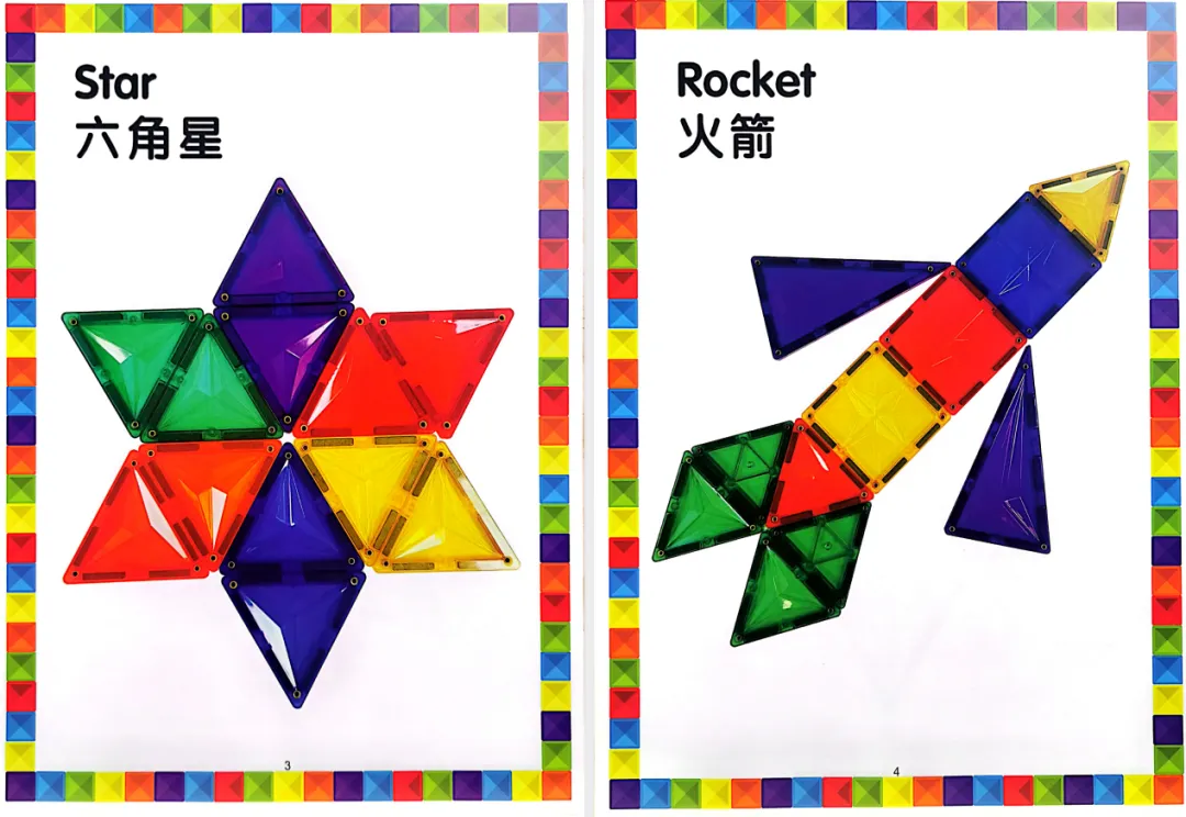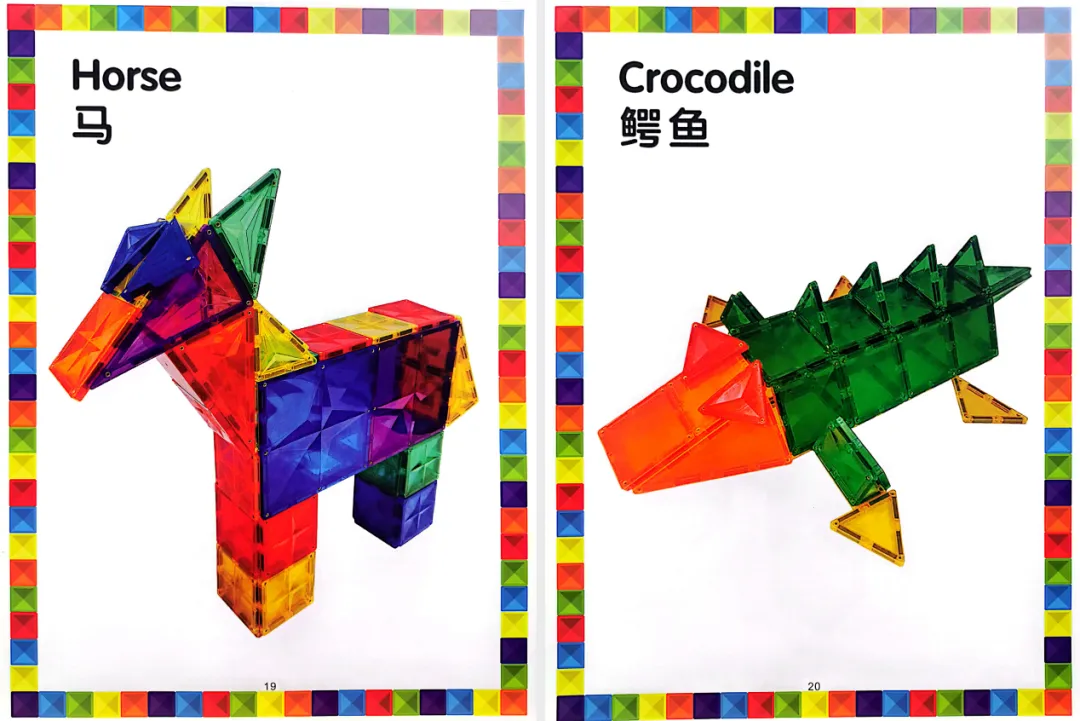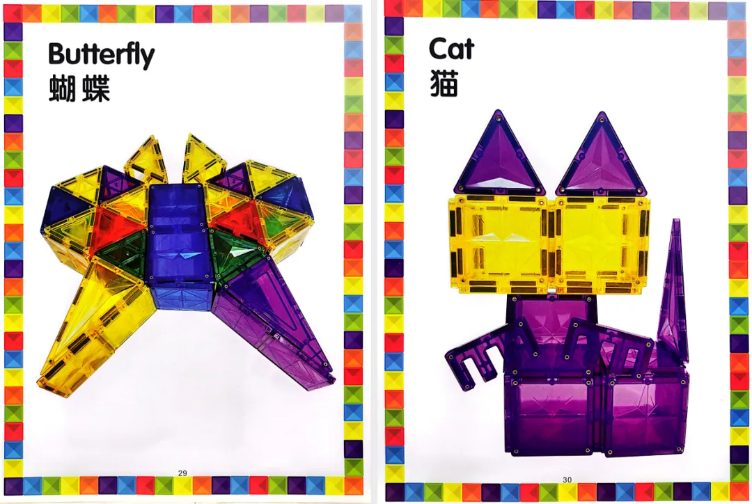 全套高清 PDF,可直接打印,每一页都有步骤拆解图 + 成品展示图,新手娃也能轻松 get 磁力片的乐趣,再也不用让磁力片在家吃灰!