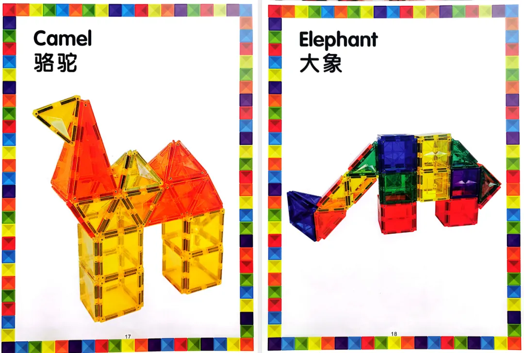 - 进阶创意篇🔸:适合 4-6 岁娃,解锁组合造型,比如城堡、飞机、小动物、恐龙等,加入形状组合技巧,锻炼娃的想象力和创造力;