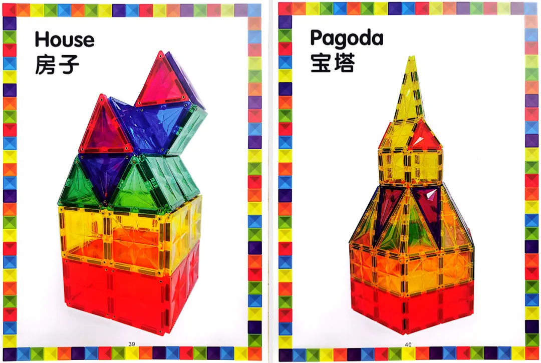 - 入门基础篇🔹:针对 2-4 岁低幼宝宝,教娃认识正方形、三角形、圆形等基础形状,拼搭小房子、小车子、小花朵等简单造型,每一步都有清晰图示,娃照着拼就能成功;