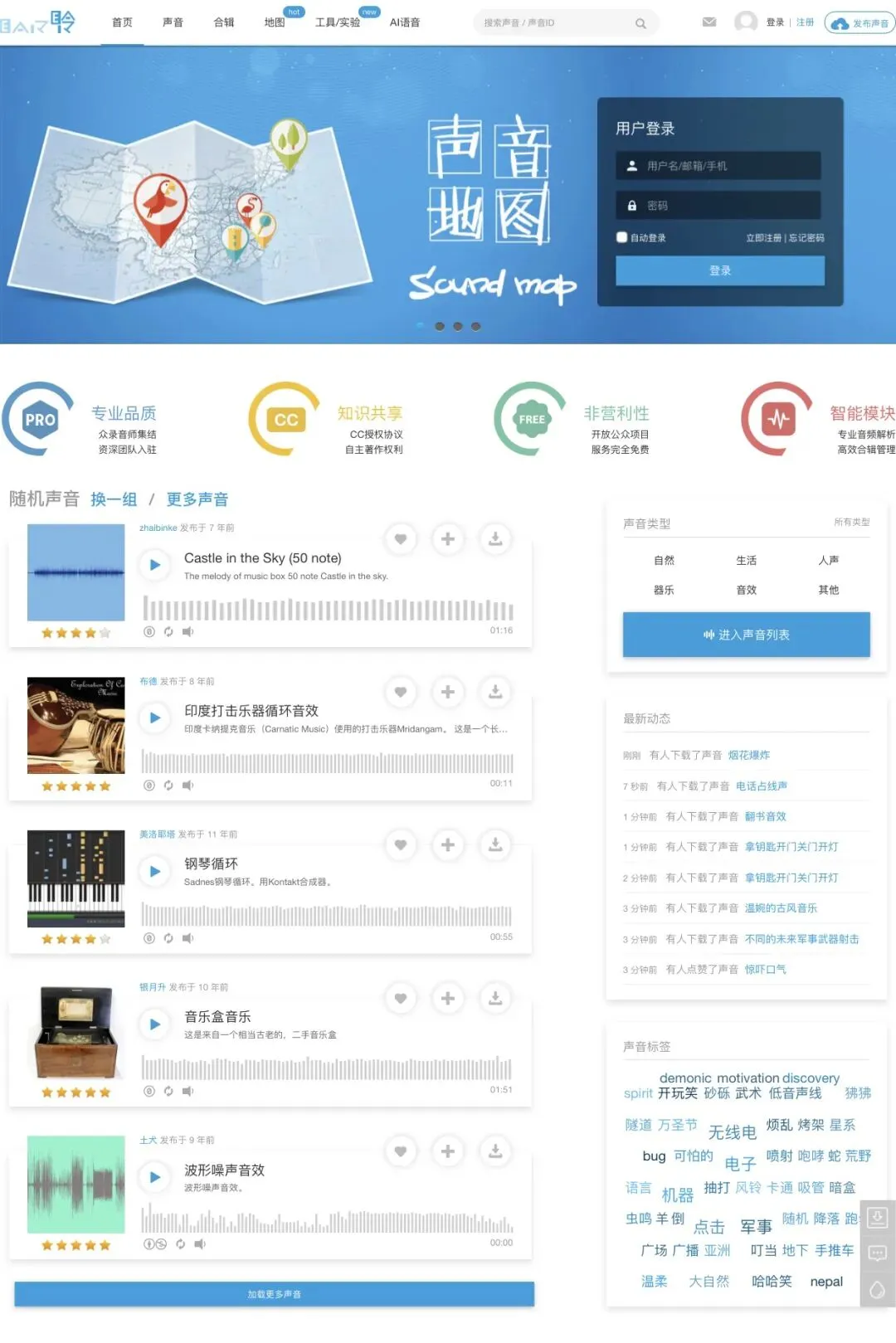 ✅ 核心亮点:国内高品质公益音效平台,音质清晰,覆盖自然环境、生活场景、人文纪实等品类,分类清晰,无版权纠纷,适合追求质感的创作者。