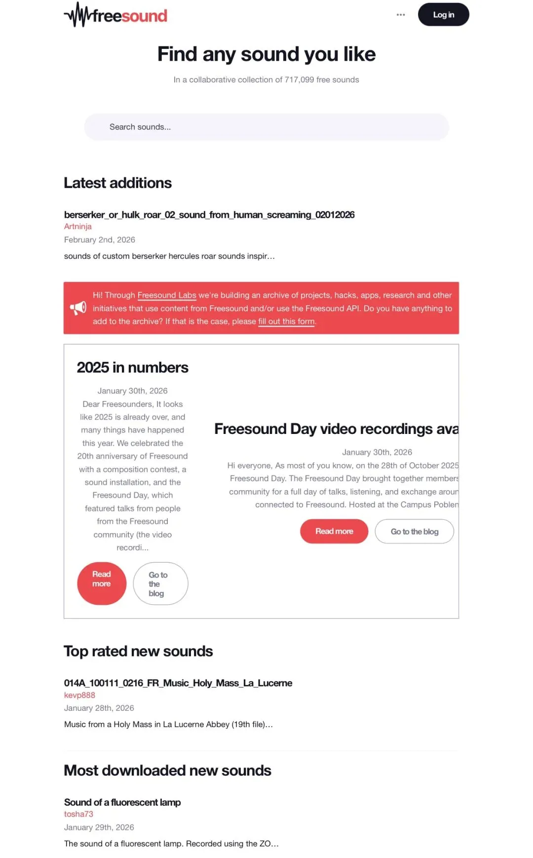 ✅ 核心亮点:全球音效创作者社区,资源量庞大,小众独特音效超多(实验电子音、罕见自然现象音等),支持高清下载和二次编辑,部分需注明出处。