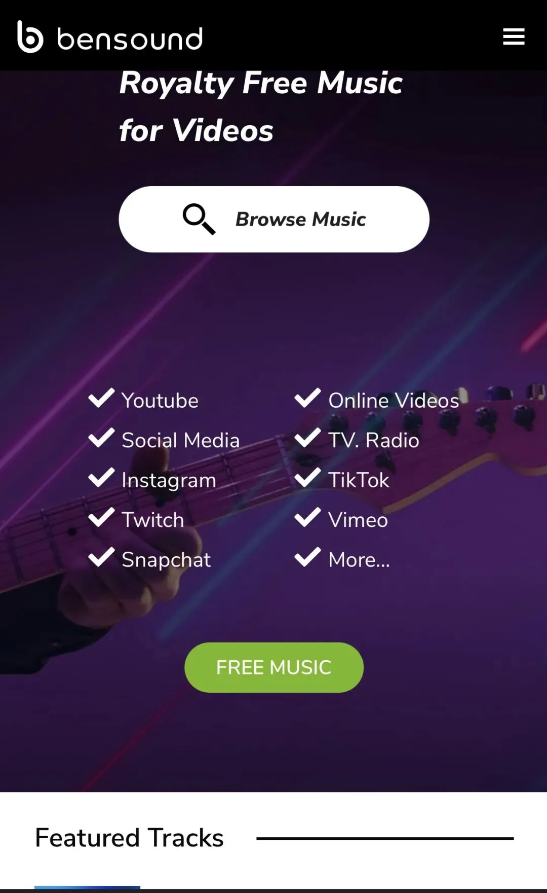 ✅ 核心亮点:独立音乐人打造的平台,背景音乐偏轻快温暖,适合企业宣传、教育视频,部分免费需署名,界面简洁,找歌效率高。