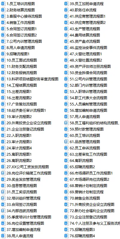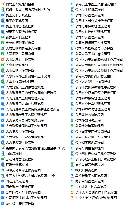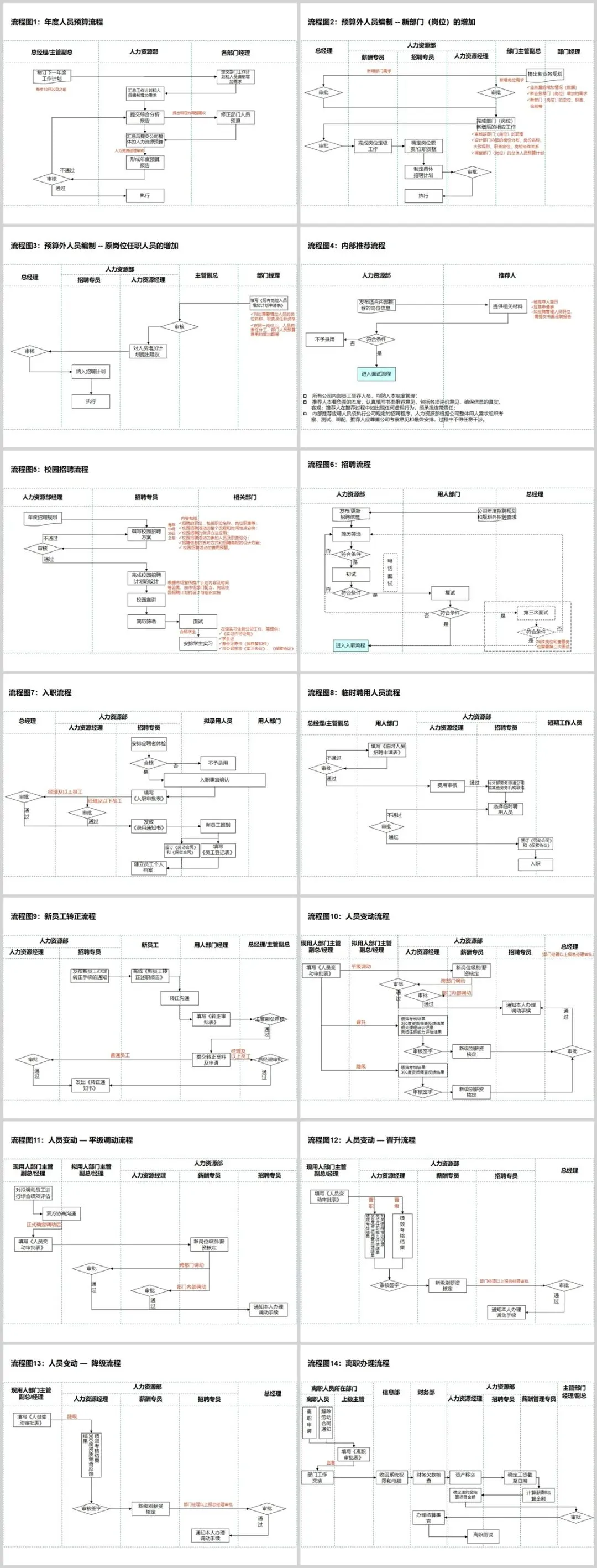 《人资工作流程图》资料包含人力资源六大模块的工作流程图,总共153个文件,300+个流程图,非常全面。