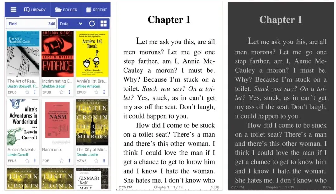 它完全免费,支持PDF、ePub、Mobi等多种电子书格式,具备书签、注释、目录等实用功能,同时还支持云服务和在线目录,功能全面。亮点功能包括夜间模式、多词典支持、音乐模式自动滚动、TTS语音朗读以及多种文字搜索,满足不同用户的阅读需求。