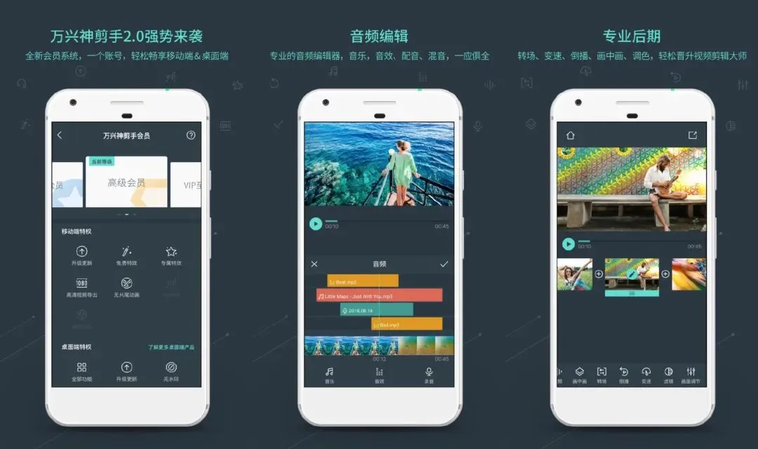 它完全免费,操作简便,提供自动分类、快速导入、视频录制等多种实用功能。用户可以随心所欲地编辑视频,包括应用多种主题、配乐、转场动画,以及调整宽高比例。主要功能亮点包括片段剪辑、裁剪、滤镜添加,还能轻松加入字幕、动效、画中画和贴纸。此外,视频的减速、加速、重复、旋转和删除等功能也一应俱全。