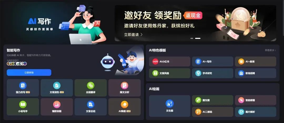 炼丹家AI是一款专注AI聊天、智能写作、AI绘画的实用工具;软件支持网页版及Windows、Mac、Android和微信小程序。它已支持超过 2000 个优质对话角色模型、700 个优质高效业务模板、3600 张优质图片示例可以同款创作,让用户马上就可以体验AI技术的犀利。智能写作支持:文档管理系统、多功能写作编辑器、召唤AI写作助手、快捷联动优质写作模板(扩写、简写、续写、多文风改写、观点总结、多语言翻译、标题优化、润色、修改多语气、AI 降痕、全文分析...)AI绘画支持文生图、图生图、AI二维码、智能修图(包含一键 AI 抹除、抠图、重绘、换背景、无损放大、扩图)炼丹家AI功能全面,操作便捷,是提升工作效率和创意表达的得力助手。炼丹家AI 官网地址: