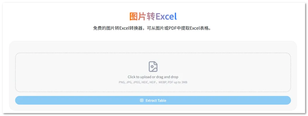 图片转Excel是一款易用的在线图片转Excel工具;网站支持全平台访问。
