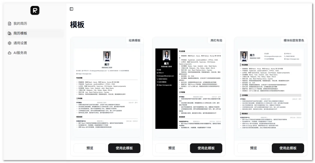 它界面简洁,操作简便,无需注册登录,数据本地存储,保障安全。提供 4 种实用简历模板,支持预览和自定义编辑。功能全面,包括自定义模块、主题色、字体设置等,支持 PDF 导出。还内置 AI 语法纠错和润色功能。总体而言,它高效易用,助你轻松打造专业简历。