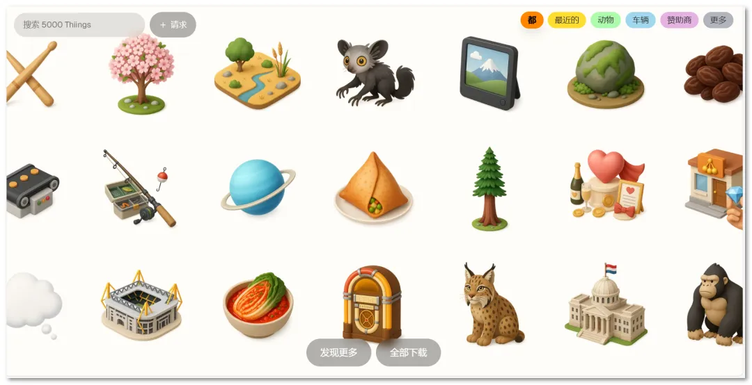 The Thiings Collection 是一个可爱风格3D图标库网站;支持 Web 平台。