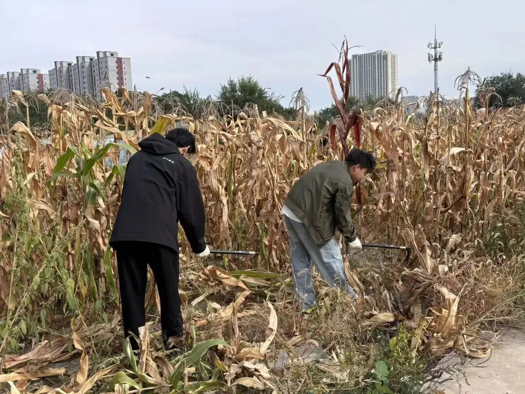 为引导团员青年在劳动中践行 “知行合一” 的理念,将理论知识与实际生产相结合,树立脚踏实地、艰苦奋斗的优良作风,为乡村振兴贡献青春力量。全体支部成员在东园区集合,后勤工作人员进行签到,分发手套等劳动工具,宣传记录组拍摄劳动过程。班长张广磊向大家介绍活动整体流程、人员分工及活动纪律(如服从安排、不擅自脱离队伍、爱护农作物与劳动工具等)。同时结合实物(成熟玉米棒、地膜样本),为全体支部成员讲解玉米收割与地膜回收的技术要点。支部成员分组收割,由学院分团委书记其乐木格老师指导并讲解,纠正错误操作,提醒支部成员注意安全,避免扎堆劳动,防止碰撞。劳动结束后,各小组整理劳动工具,将收割的玉米棒、回收的地膜运至指定区域。活动结束,全体支部成员集合,其乐老师对活动进行总结,肯定支部成员在劳动中的积极表现,再次强调了农耕劳动的深远教育意义。