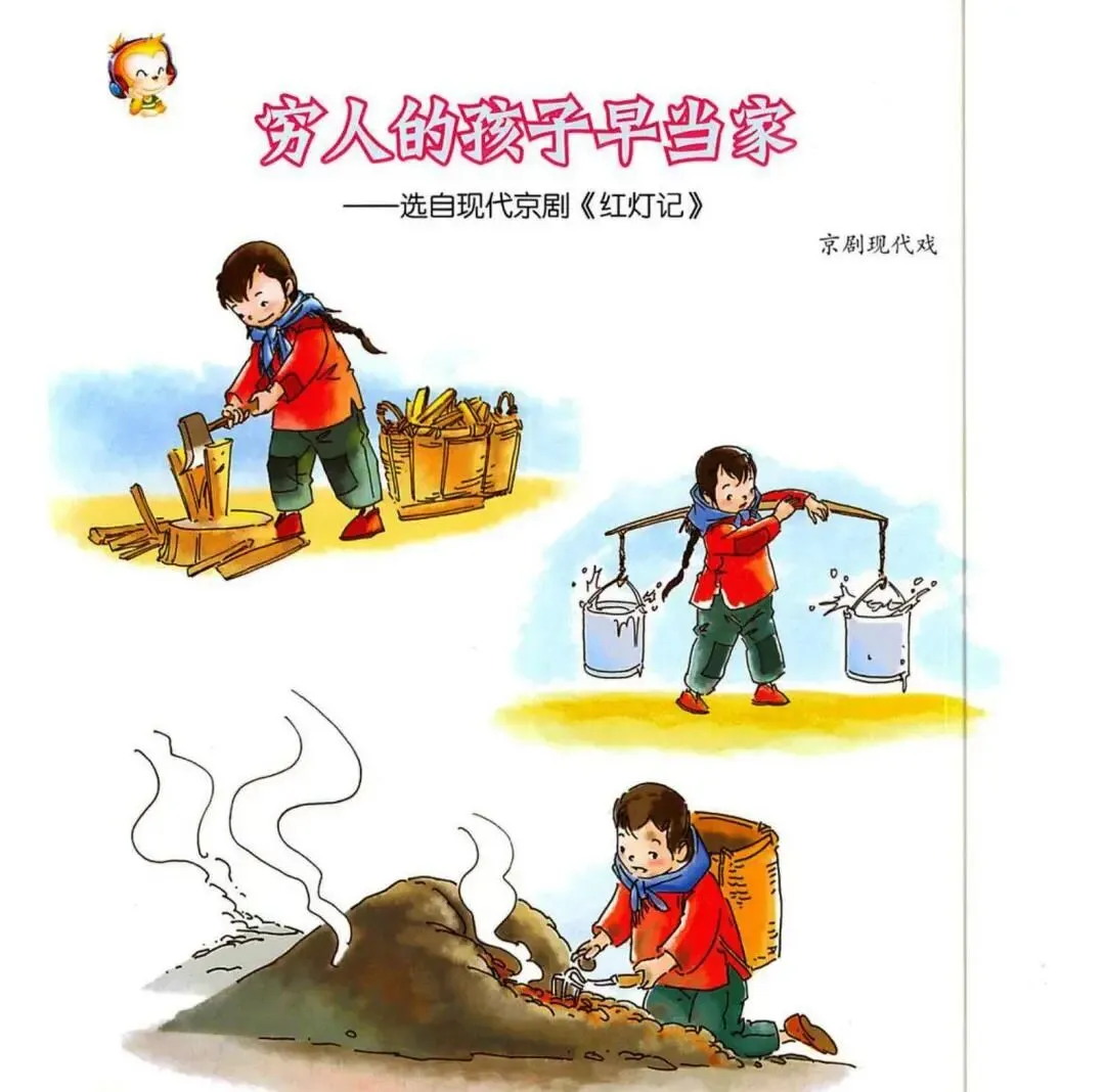这一唱段选自现代京剧《红灯记》,唱腔为西皮原板,2/4 拍,唱段可分为两部分,第一部分表现了铁梅从小吃苦耐劳, 里里外外一把手, 表达了穷人的孩子早当家的主题。第二部分开头转为快板, 1/4拍,情绪激昂,隐喻革命者的后代继承革命传统, 在革命斗争中前赴后继。这段唱腔充分表现了李玉和对勤劳懂事的铁梅的喜爱与自豪的情感。