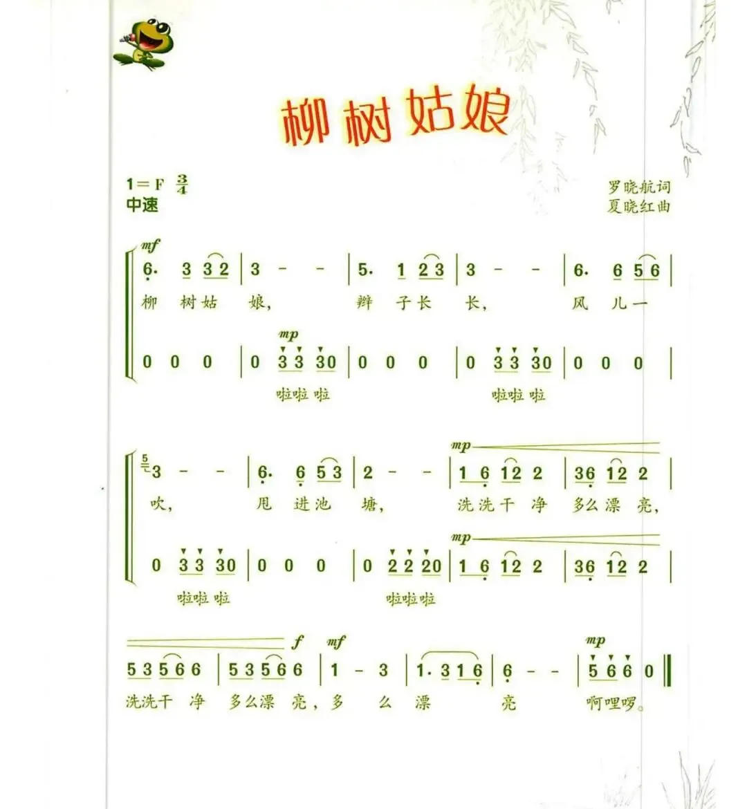 这是一首曲调优美、 轻快的二声部合唱歌曲。歌词简练, 它形象生动地描绘了江南水乡万物一新,一片生机盎然的春天景象。歌曲为3/4拍,一段体结构,全曲以附点节奏为基本节奏型。