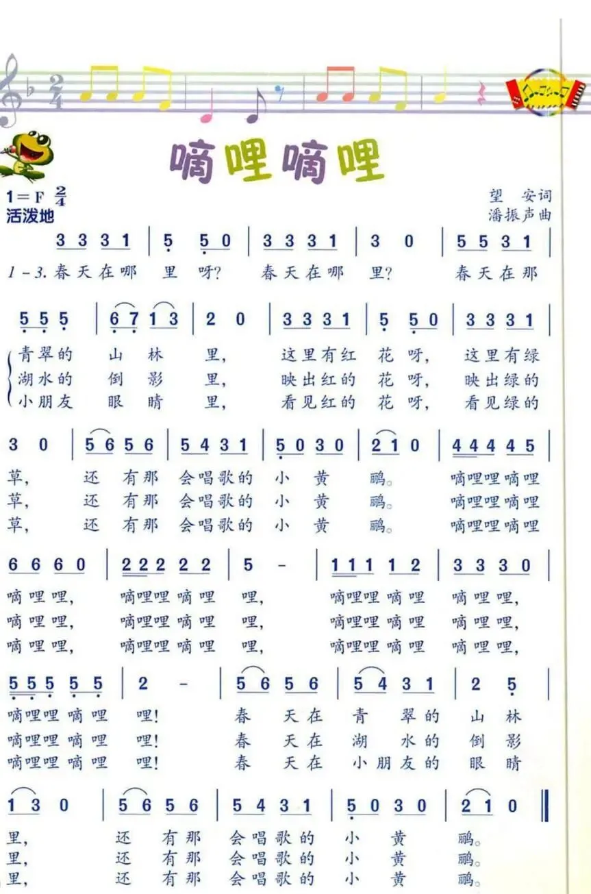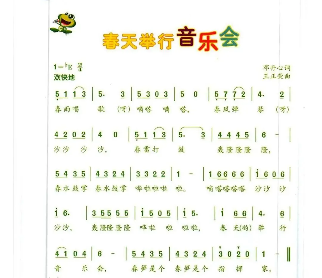 这是一首2/4拍、曲调欢快活泼的儿童歌曲。跳动的节奏、 流畅的旋律, 描绘了一幅充满生机的春色图景, 象声词编织了一曲优美动听的 “春天交响曲”。二段体结构,每段各有四个乐句。