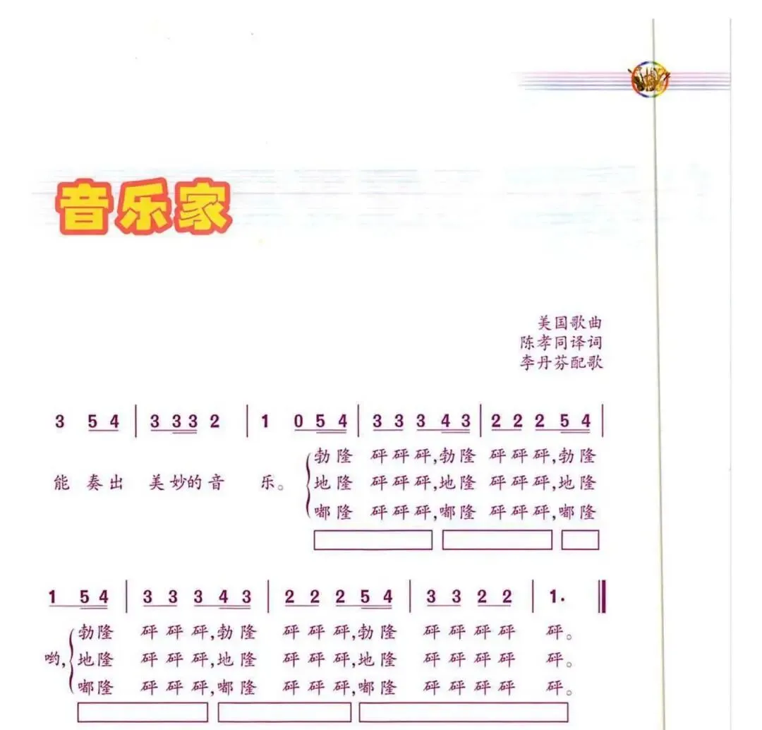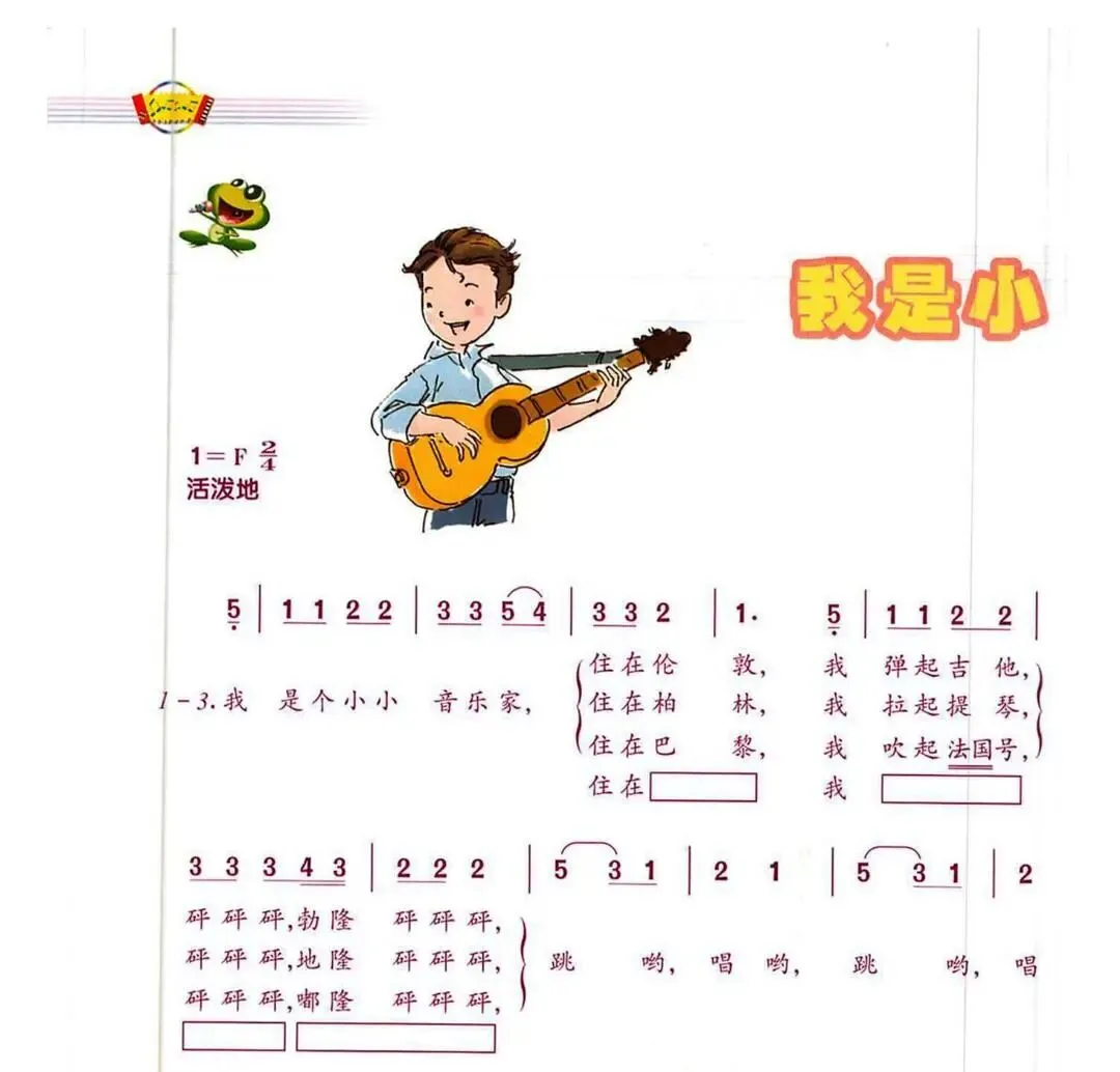 这是一首曲调欢快活泼、歌词简练、富有童趣的美国儿童歌曲。歌曲生动地表达了孩子们一个美好的愿望和共同心声“我是小音乐家”。歌曲为2/4拍,一段体结构,弱起节拍贯穿全曲。