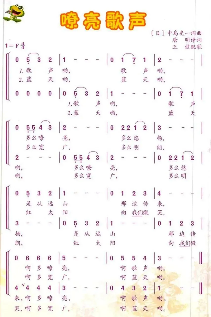 这是一首曲调规整, 词意简练而富有意境的日本儿童歌曲,4/4拍,结构为四个乐句组成的一段体。歌曲运用轮唱的方式,使音乐有着动荡飘逸之感,营造了悠扬的歌声遥相呼应在空中回荡的美妙效果,抒发了孩子们对大自然的无比热爱之情。