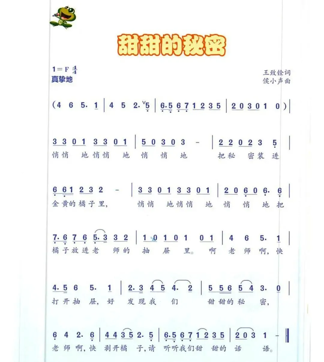 这是一首4/4拍、曲调轻快活泼的儿童歌曲。歌曲借物抒情, 通过饶有趣味的活动, 揭示了学生的心理,唱出了对老师的热爱之情。由两个乐段组成,第一乐段多八分休止符,第二乐段节奏较自由,旋律多跳进,与孩子亲切的语气非常贴切。