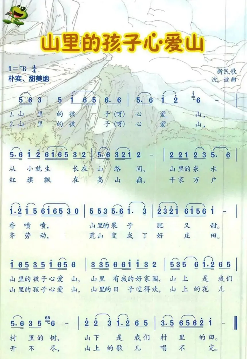 这是一首赞美家乡的儿童抒情歌曲, 它表达了山里的孩子热爱家乡的真挚情感。歌曲4/4拍,曲调欢快流畅, 较多运用了切分节奏和旋律小跳,具有浓郁的民歌风。歌词的质朴,不仅使人闻到了泥土的芬芳,也让人感受到山里孩子对家乡日新月异的景象所表达的喜悦和热爱之情。