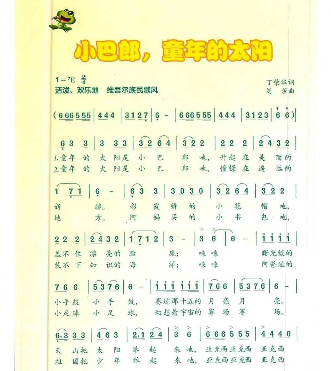 这是一首具有新疆维吾尔族民歌风格的儿童歌曲。音乐非常热情、 活泼、 开朗, 内含舞蹈韵律, 充满了童真童趣。歌曲为2/4拍,切分节奏以及衬词“亚克西”的运用, 突出了歌曲的新疆风格。寓意着新疆的孩子胸怀世界, 放眼宇宙的心胸和气势。歌曲分两段,第一段两个乐句,第二段最后“亚克西”逐级下行的进行,既突出歌曲节奏特点,也是赞美之情更为强烈!