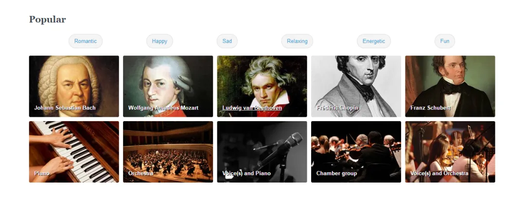 musopen是一个无版权古典音乐下载网站,类型丰富,可以根据音乐类型筛选你想要的素材,也可以根据音乐家来查找音乐,比如肖邦、贝多芬、舒伯特等等。