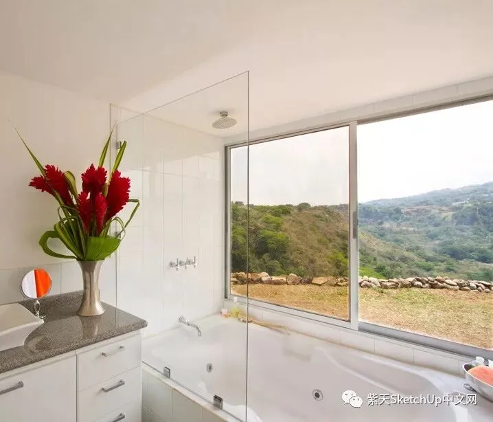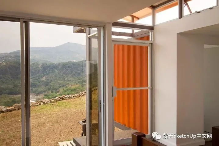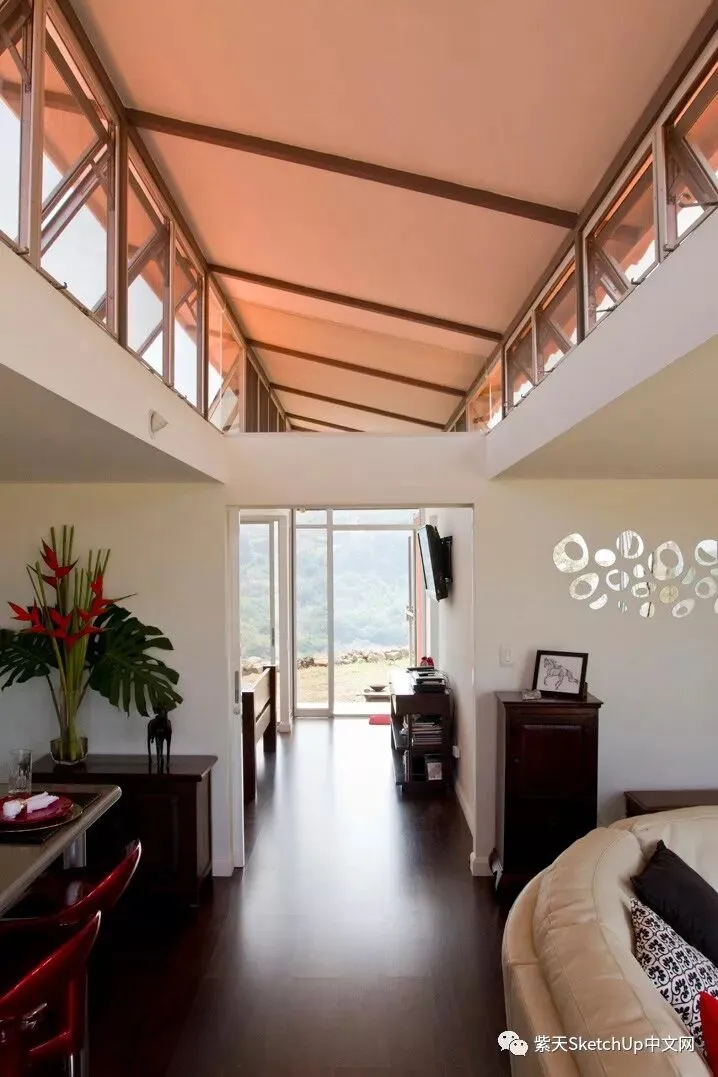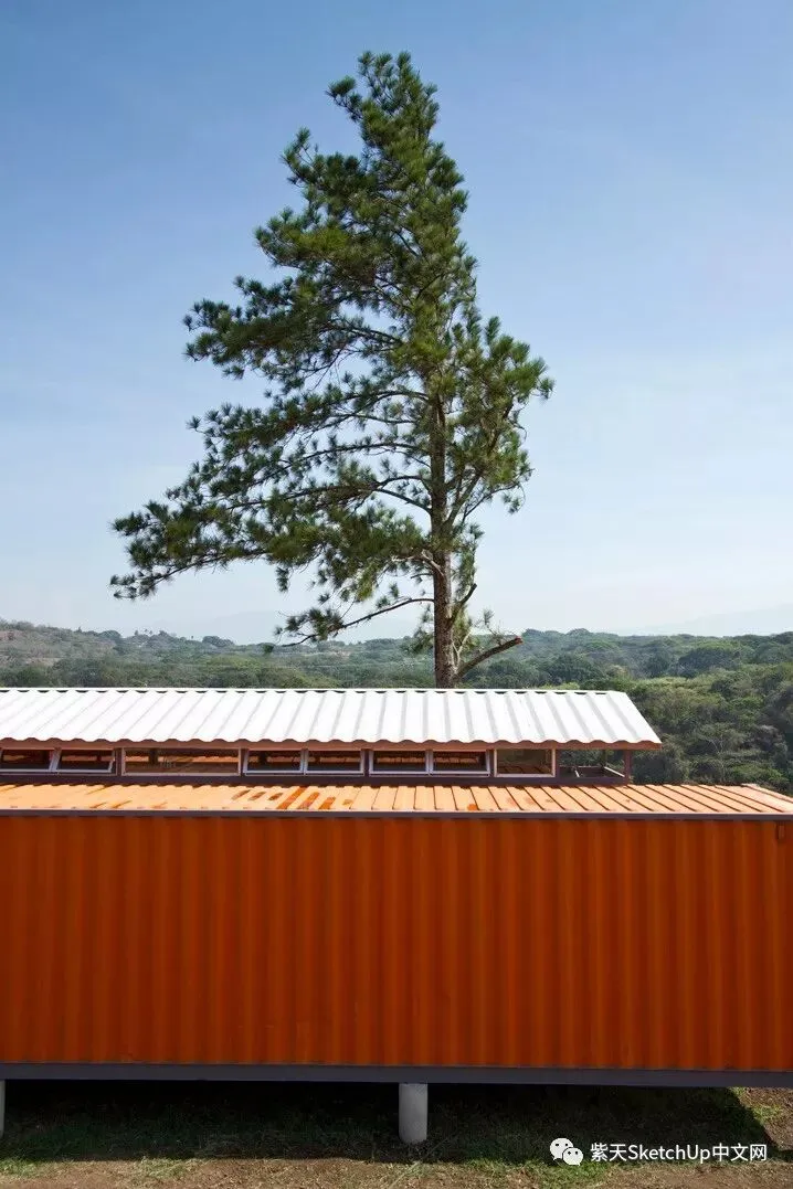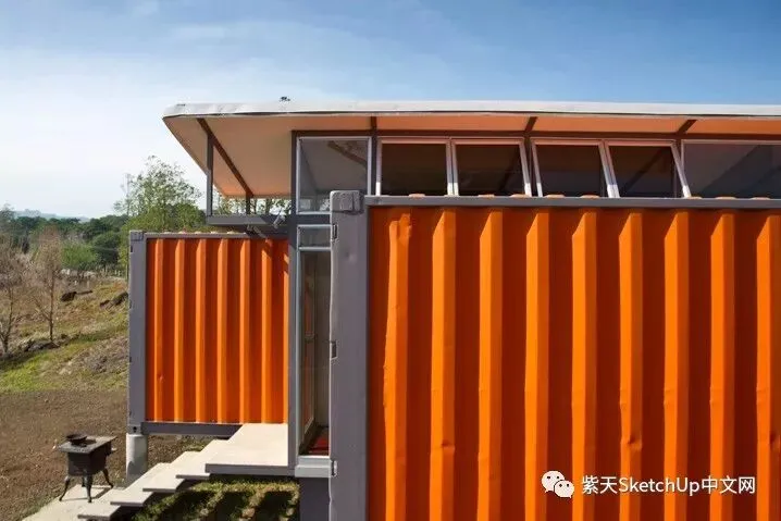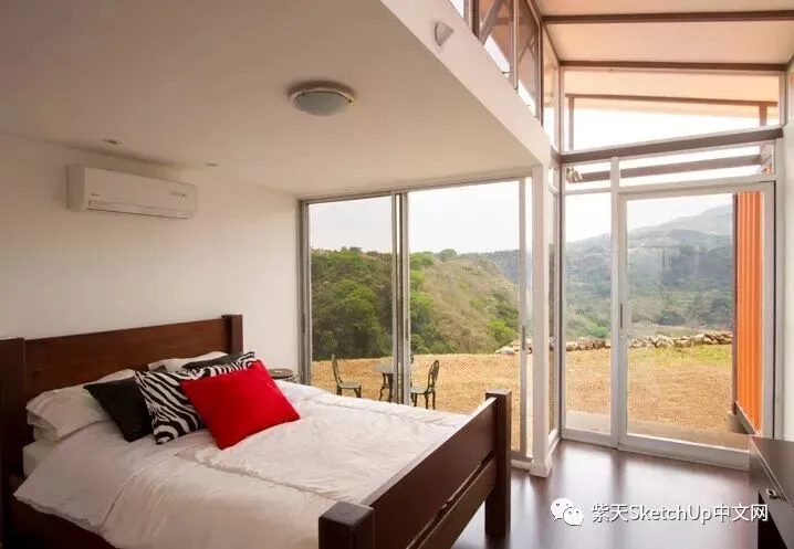 对我来说最重要的是让他们能欣赏日出,晚霞和壮观的景色,也就是努力创造一种舒适感和家的感觉。两个集装箱之间的天窗使用制作窗户的废弃金属做成,这个天窗不仅给人一种内在的宽敞感觉而且提供了非常惊人的空气流通效果,以至于房间从来不需要使用空调。”