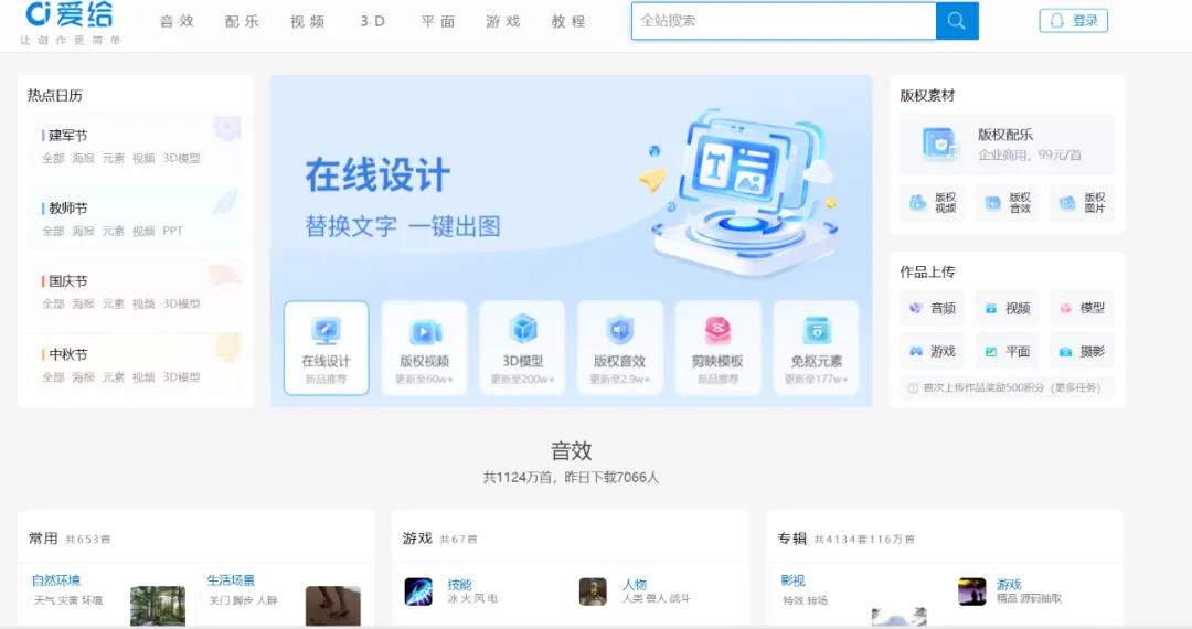 爱给网是一个每日提供免费音视频素材下载的平台;网站支持多浏览器访问。