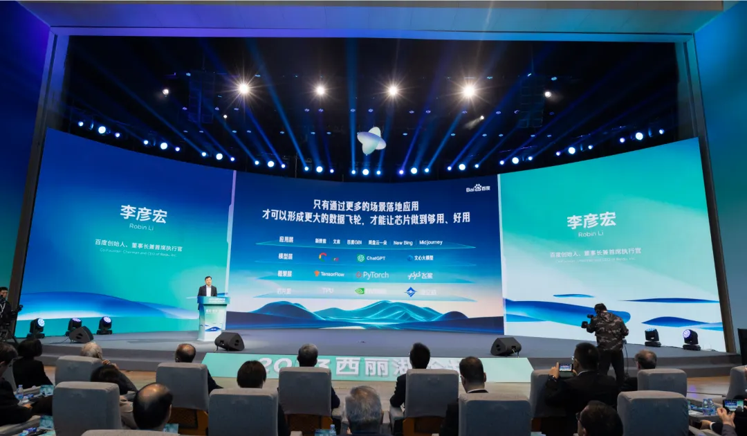 “因为AI产业是需求驱动,应该在需求侧、应用侧发力,只有通过更多的场景落地应用,才可以形成更大的数据飞轮,才能让芯片做到够用、好用。” 李彦宏说。