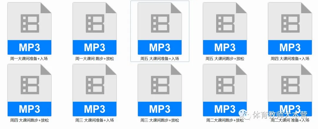 周一至周五不同准备、入场、跑步、放松等配乐