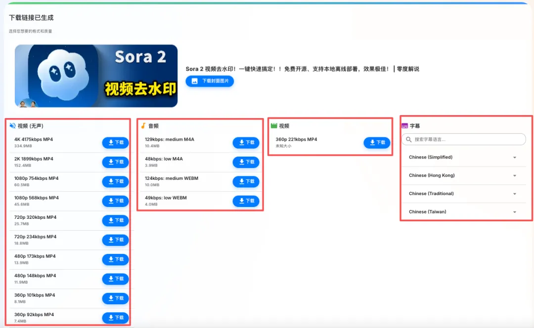 更贴心的是,它还有(Chrome、Edge直接添加),安装后自动检测网页里的视频、音频甚至字幕,一键下载,连粘贴链接都省了——懒人福音实锤!- ✅ 无套路:没有会员充值,没有隐藏消费,所有功能全免费,仅对每日下载频率做轻微限制(完全不影响普通用户);