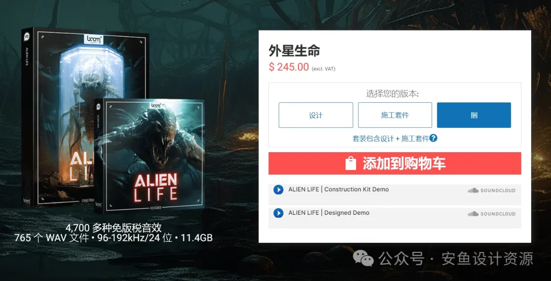 技术规格文件数量 765声音 4,710尺寸 11.4GB(解压后)格式 WAV – 24 位 – 96-192kHz / Windows + Mac声音预览:https://www.boomlibrary.com/sound-effects/alien-life/