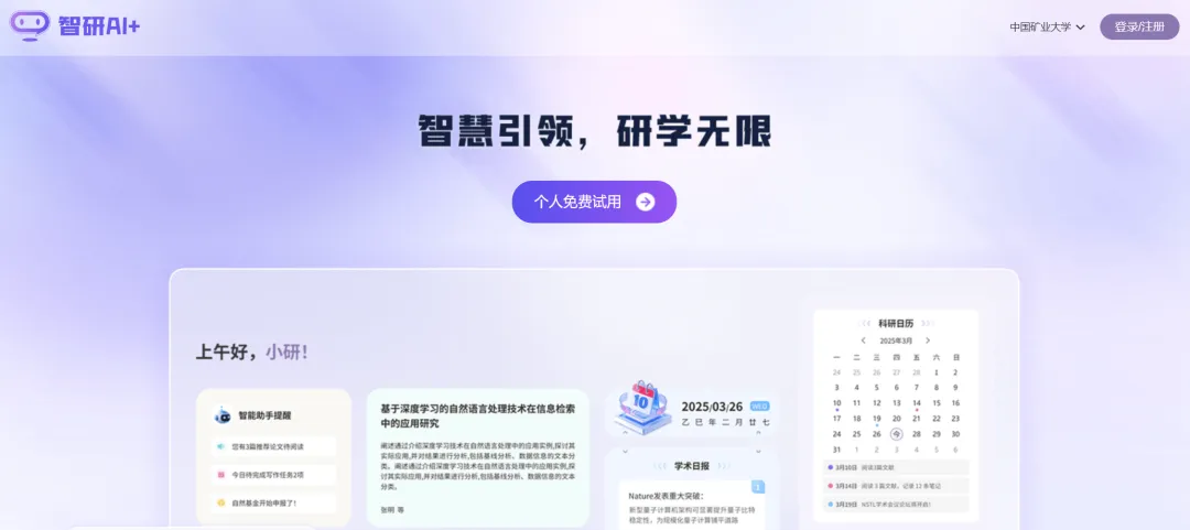 万方数据智慧研究服务平台针对科研学者、学生、老师等用户群体的研究学习场景,提供集“搜、读、写、研”为一体的智慧研究服务,贯穿科研学习全流程。智研平台结合万方自有海量资源,打通与主站文献的关联,支持在智研中对主站文献添加收藏、订阅、笔记等操作,助力高效管理文献;辅助科研选题,分析热点与难题;智能论文写作、选题推荐、大纲编写、文本润色,提高创作效率,智能推荐学术期刊,帮助精准投稿;学习目标和任务个性化制定和提醒、重要事项记录等,轻松掌控科研学习全流程。
