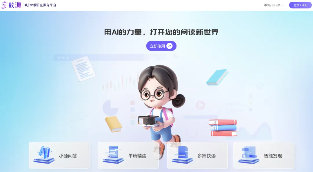 数源AI学术研究服务平台有效结合DeepSeek-R1深度思考模型和高质量科技文献资源,智能理解用户检索意图,快速凝练简洁可靠的检索摘要并直观展示知识关联脉络,支持原文溯源以降低AI幻觉;提供伴随式辅助阅读服务,实现要点理解、术语解读、论文评价、多篇对比等功能,帮助深入研究并拓宽理解。平台致力于构建高效、可靠、智能的学术研究服务,帮助研究者更好地发现、获取、理解和分析高价值资源,有效提升科研效率和洞察能力。