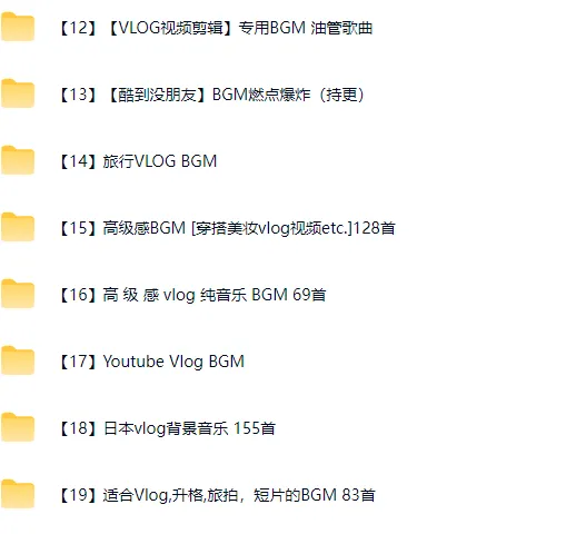 【BGM素材资料】9999首视频剪辑BGM背景音乐音频素材合集资料(视频剪辑+婚礼mv+vlog+宣传等风格)