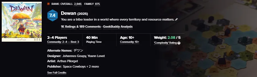 自发布以来游戏长期收获到来自全球玩家的认可和看好,除了在BGG热度榜、线下展会上收获人气十足的关注之外,《德望部落》也在近期荣获DICE TOWER金标等专业媒体的推荐,让游戏本身成为了一款在桌游领域不可小觑的新星。