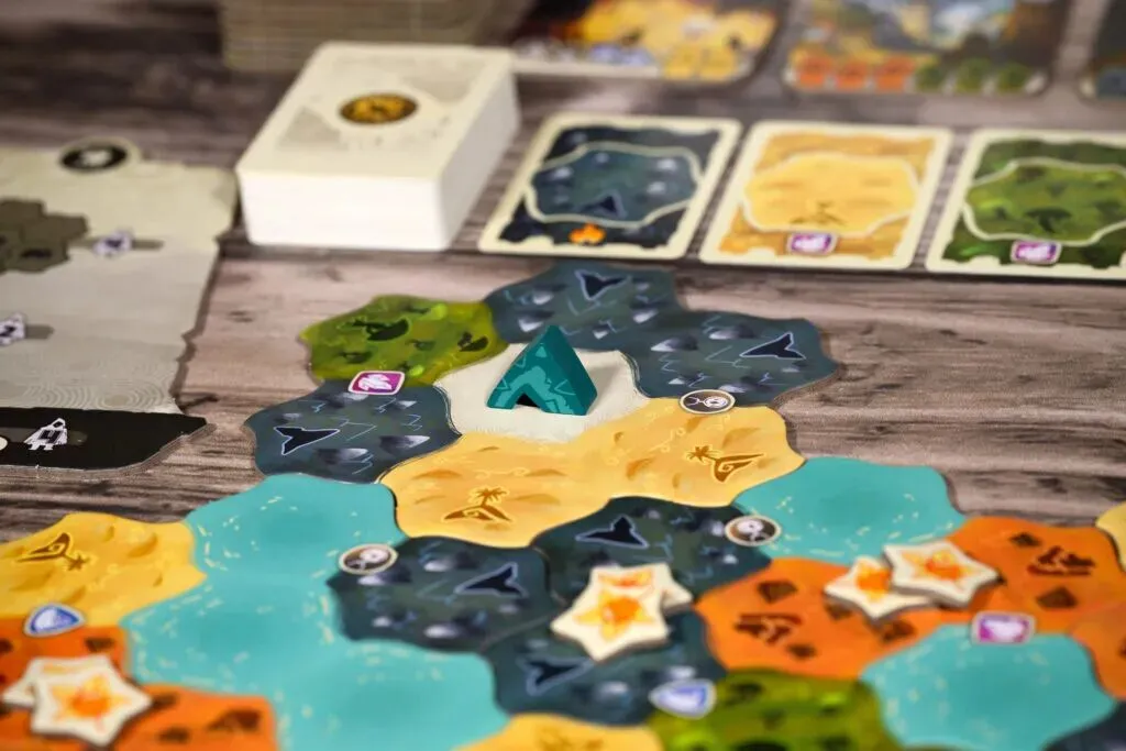 在这款以路线规划和区控为主打玩法的游戏中,2-4名玩家将尝试通过打出卡牌,执行行动来布置营帐,占据有利地形,收集资源等一系列行动,以获得对应的得分来赢取最终胜利。