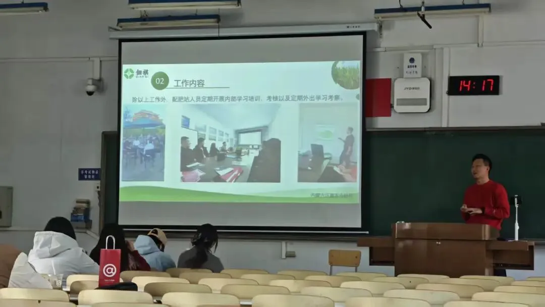 毕业季即将来临,为搭建校企合作桥梁,拓宽同学们的就业渠道,2026年3月15日下午,我院诚邀内蒙古沃鑫农业科技有限公司总经理房爱忠走进校园,为来自不同专业、即将毕业或已毕业的本科生、研究生开展宣讲招聘会。房爱忠总经理从公司概况、工作内容、招聘信息、公司福利四个方面进行了详细讲解。