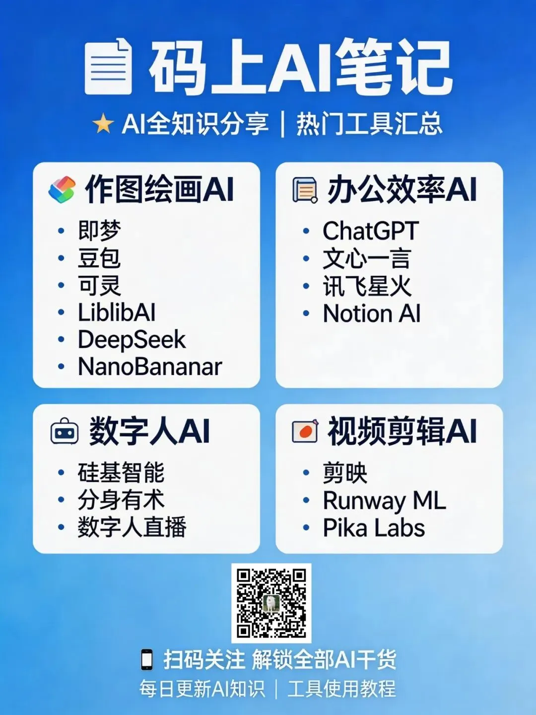 # 制作工具1. 豆包AI音乐 → 核心生成工具2. Audacity → 免费音频编辑3. BandLab → 在线协作平台4. Canva → 封面设计工具# 效率工具1. Notion → 项目管理2. Trello → 任务看板3. 飞书妙记 → 会议记录4. 石墨文档 → 协作编辑