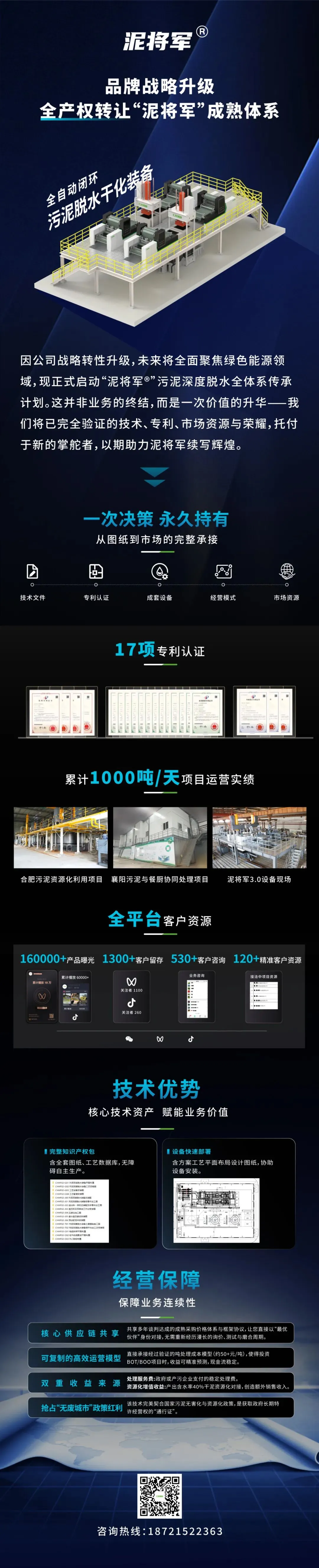 >稀缺机会!污泥脱水干化全价值链资产转让:品牌 + 客户资源 + 技术+运营体系