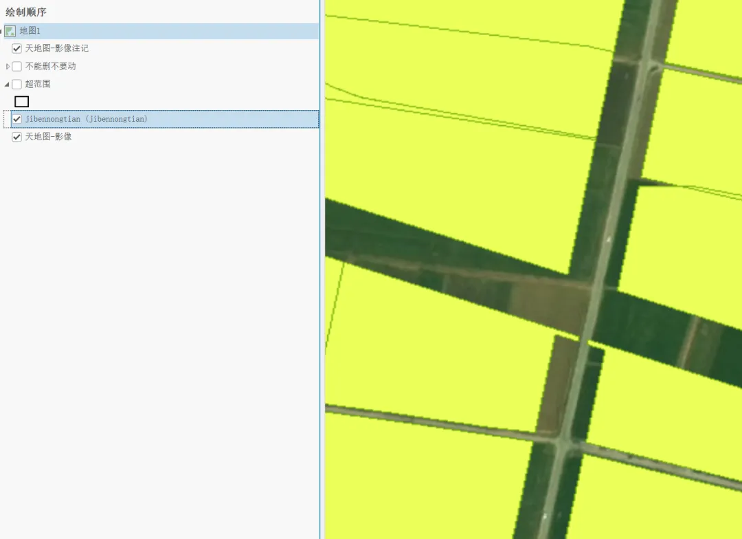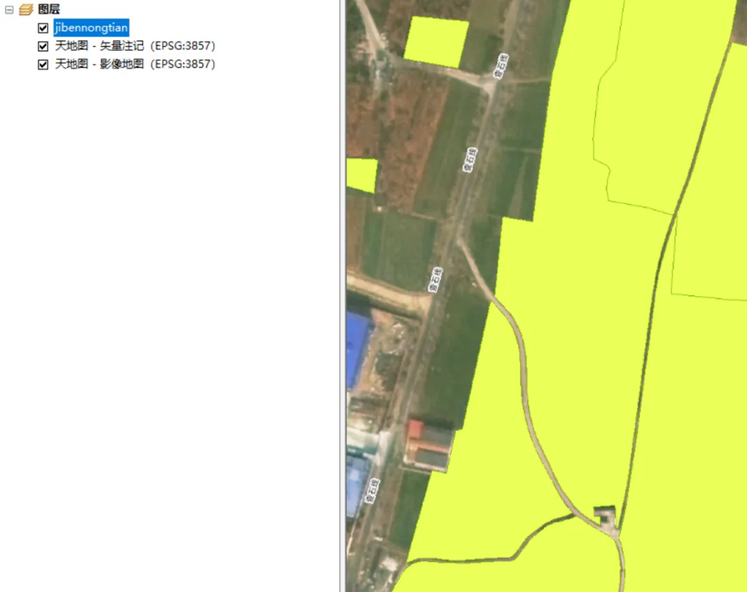 .lyr 文件。 - ■双击或将其拖入地图视图,即可加载基本农田服务图层。