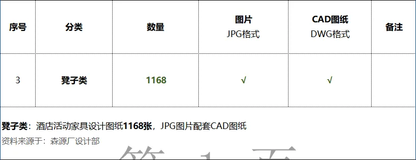 《凳子类:酒店活动家具设计图纸1168张》数量统计