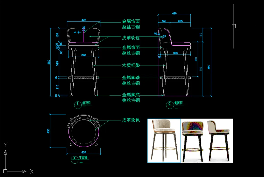 版面有限,只展示前面一小部分吧椅类的配套图片!图片与CAD图纸是配套的!
