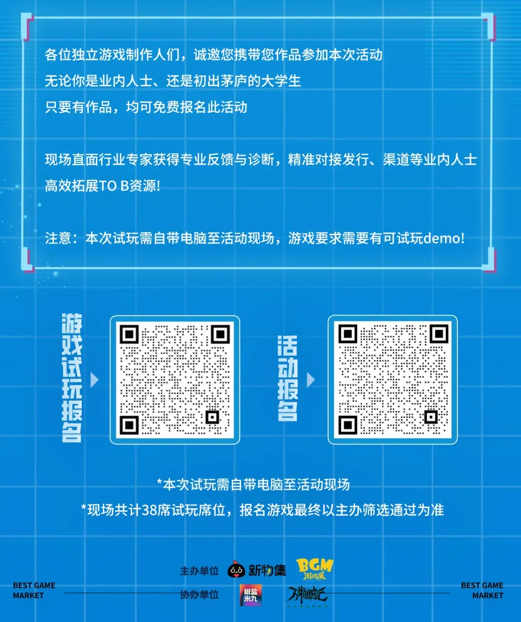 本次活动特设独立游戏试玩区。诚邀您沉浸于创意世界,亲身感受独立游戏的独特乐趣。(试玩游戏免费招募中,感兴趣请扫码报名!!!)