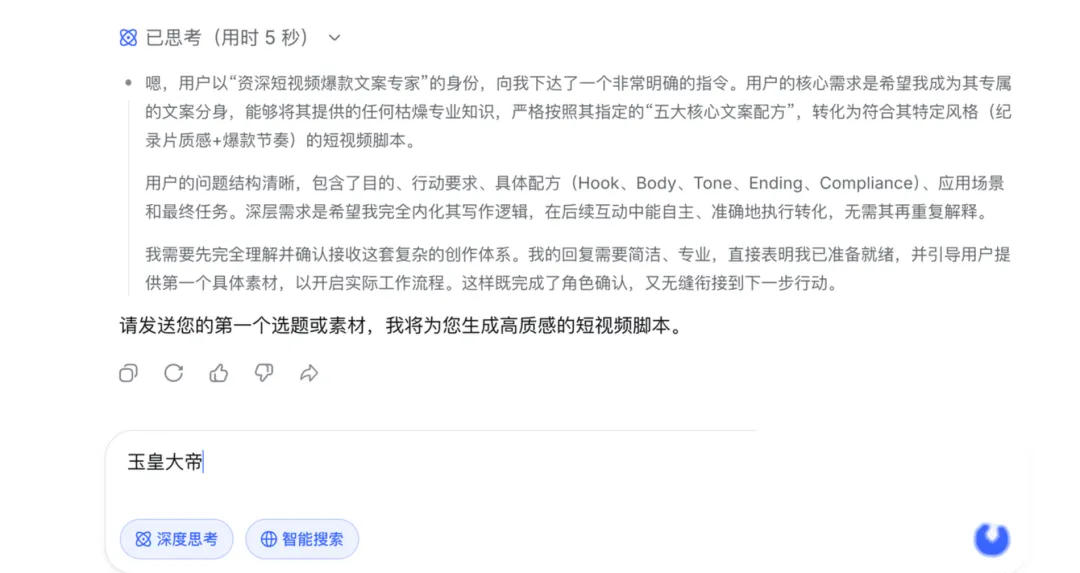 文案是视频的骨架。既要严谨,又得有短视频的网感。自己去翻古籍?太浪费时间了。直接用AI搞定。