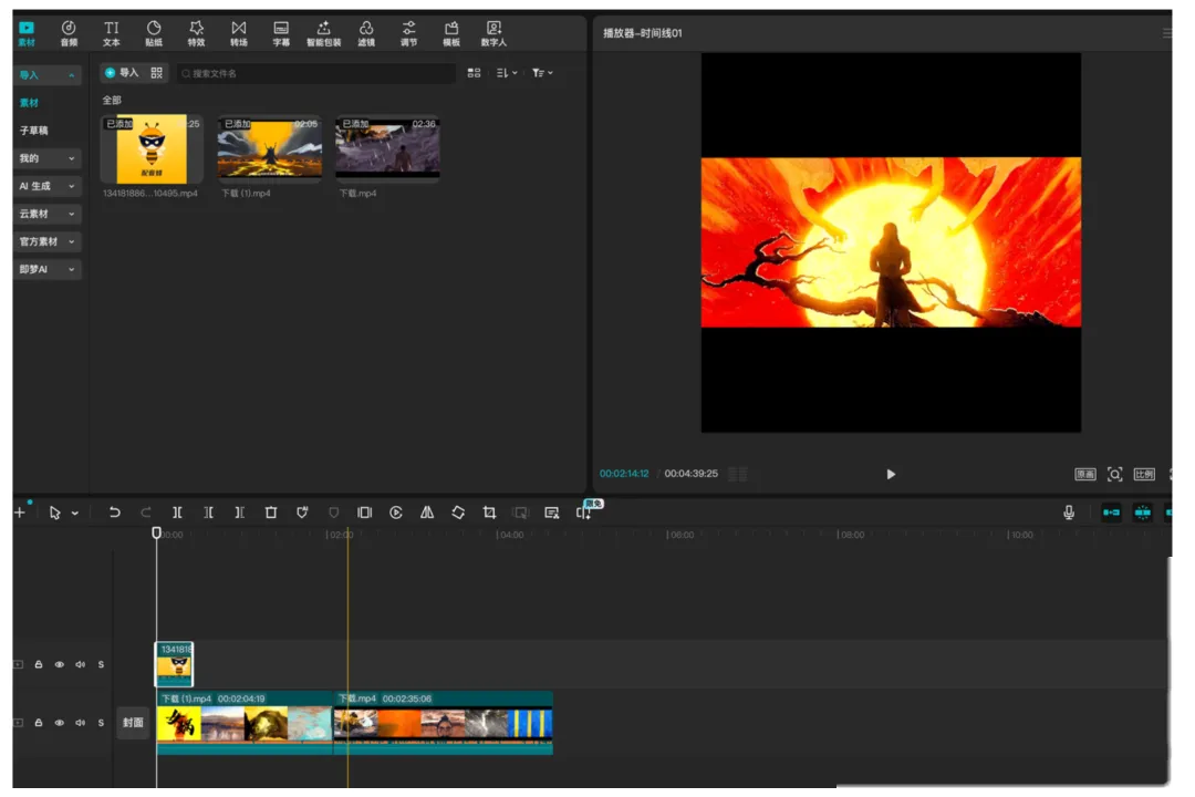 第二步,把图片和动态素材拖进剪映。多准备几张图交替使用,避免视觉疲劳。