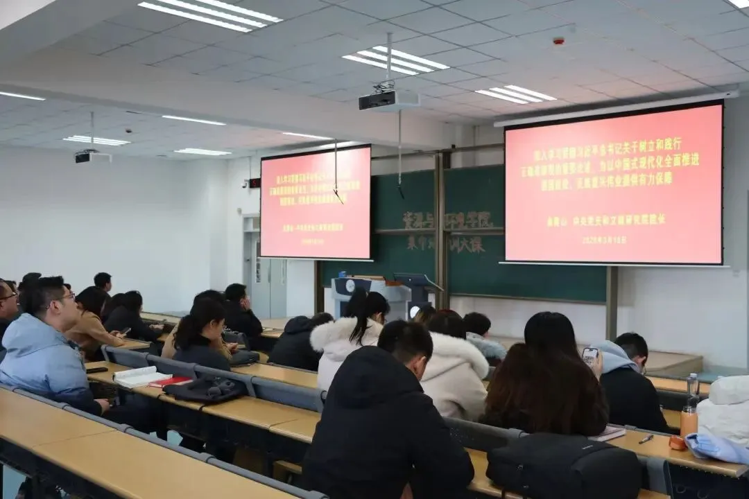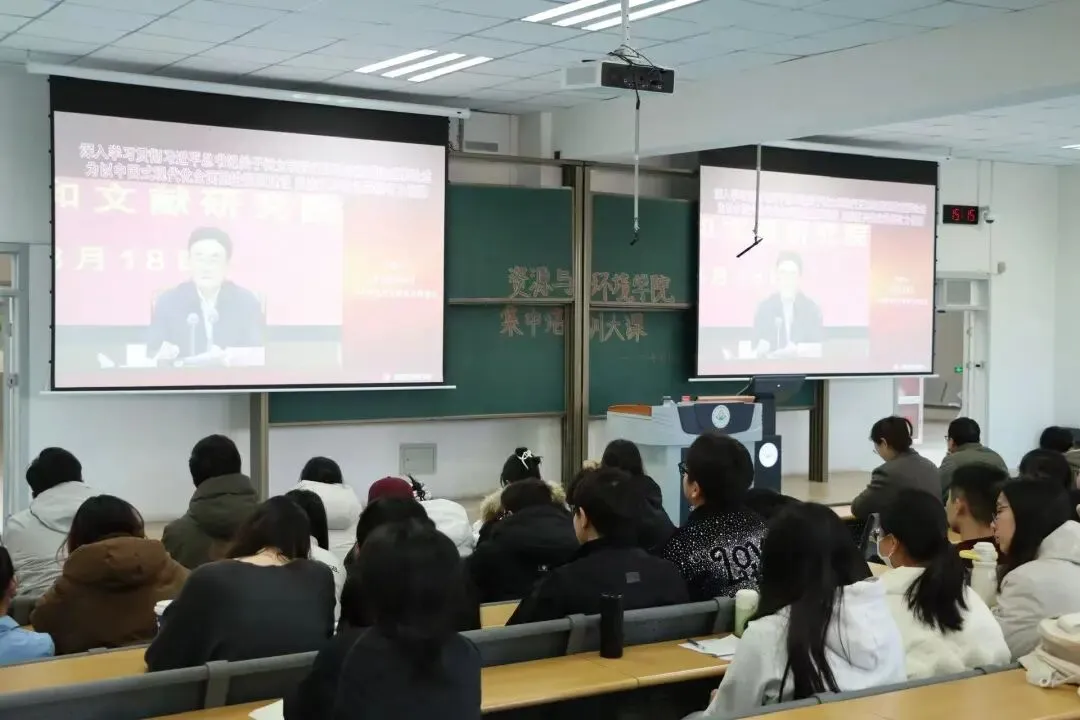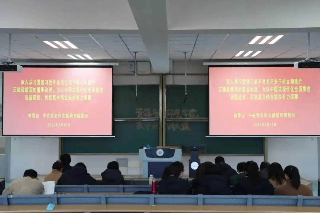 3月18日下午,资源与环境学院在南教102、104教室,组织学院全体教职工和学生党员,集中收听收看由中央党史和文献研究院院长曲青山主讲的正确政绩观专题辅导讲座,深入学习贯彻习近平总书记关于树立和践行正确政绩观的重要论述。