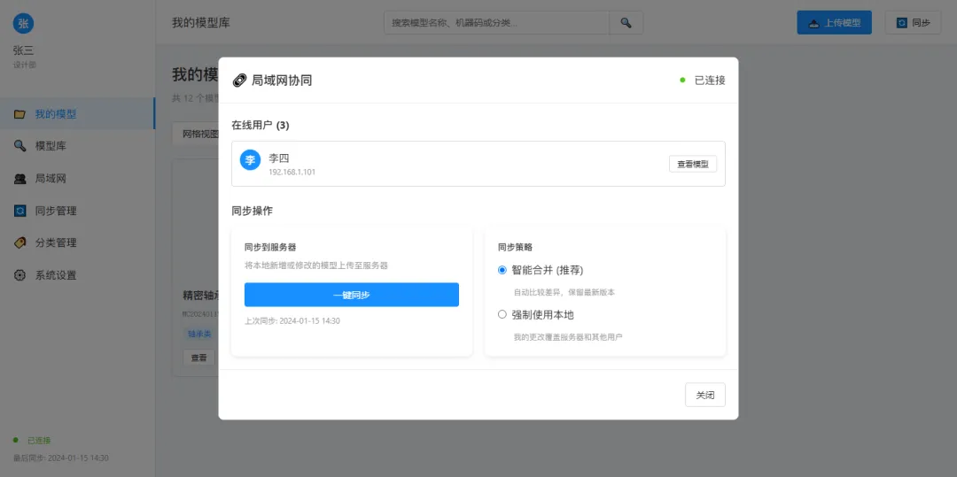 - 版本自动同步:改完模型点一下同步,团队所有人自动收到更新,不用一个个通知 “我改了,你们更一下”