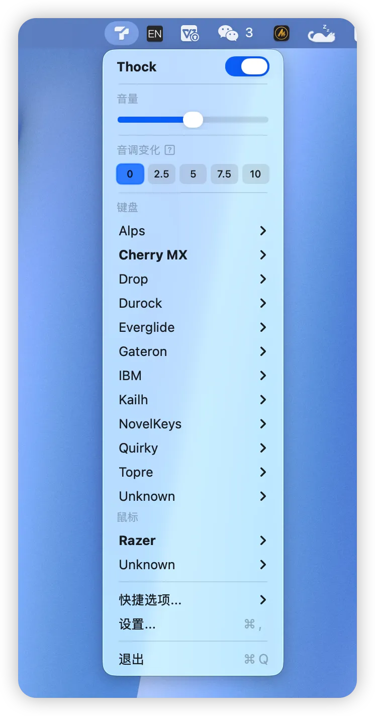 一款Github上面的开源软件,叫Thock,功能免费无广告,软件也做了汉化处理,,就是音效内容没有做汉化处理。
